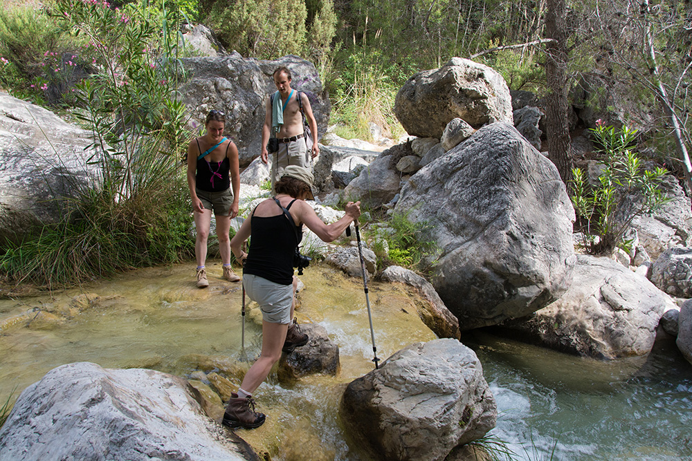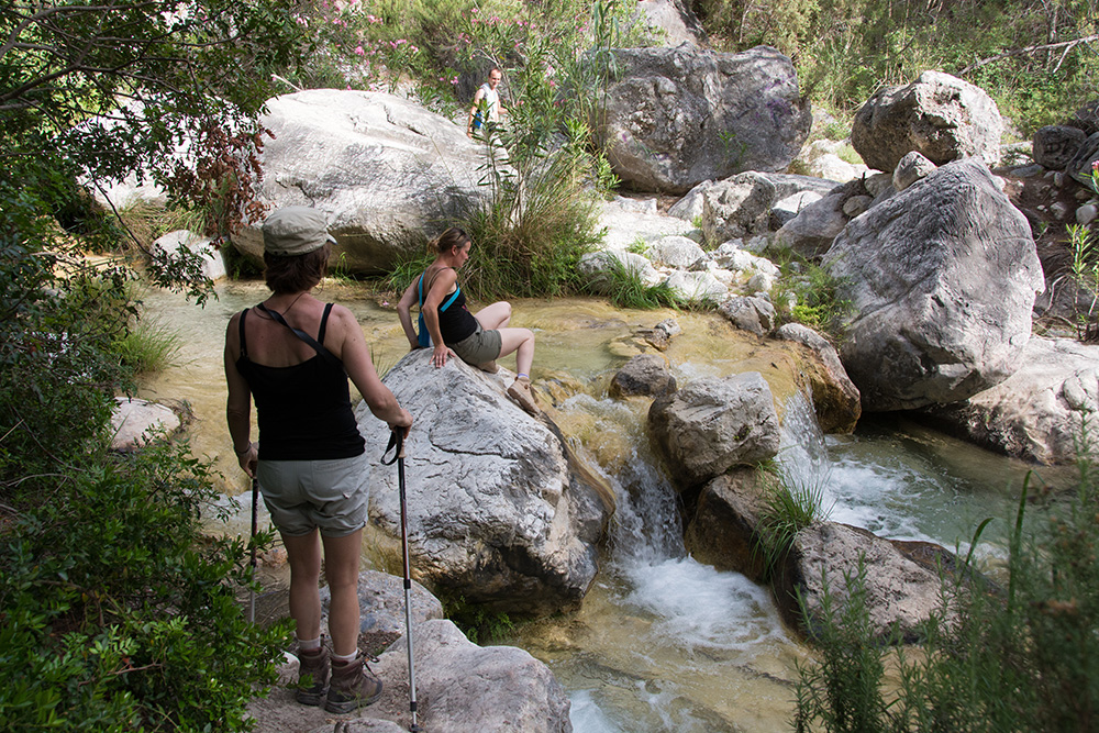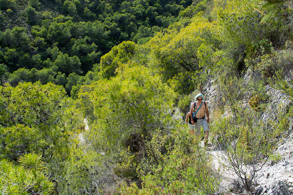 En nous retournant, nous apercevons Nerja, le but de notre randonnée. En attendant, notre chemin s'enfonce dans la Sierra de Tejeda