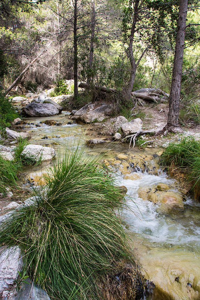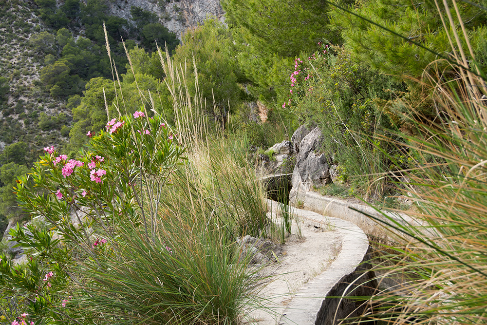 Un canal d'irrigation court au long de la vallée du Rio Chillar, à la manière d'une levada de Madère.