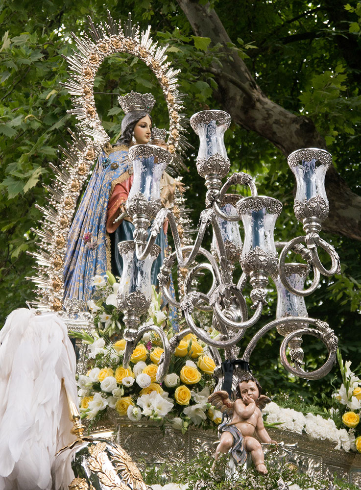 La visite de l’Alhambra nous aura pris une grosse demi-journée, ce qui fait que nous ne connaîtront pas grand-chose d’autre de Grenade. Le soir, en redescendant vers la ville, nous assistons à une procession : fanfare, notables, ecclesiastiques et enfants de choeur accompagnent une statue de la vierge lentement acheminée vers la cathédrale.