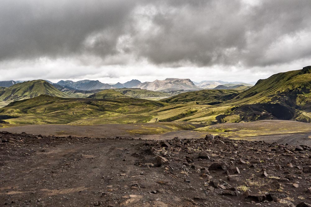 Dans sa plus belle partie, cette piste magnifique rejoint la région du Landmannalaugar depuis le sud de l’île. C’est une piste bien roulante, qui traverse une multitude de gués sans qu’il y en ait de très profonds. Encore appelée la piste de Fjallabak, Elle serpente entre lacs et montagnes et offre un superbe échantillon des paysages sauvages et volcaniques d’Islande.