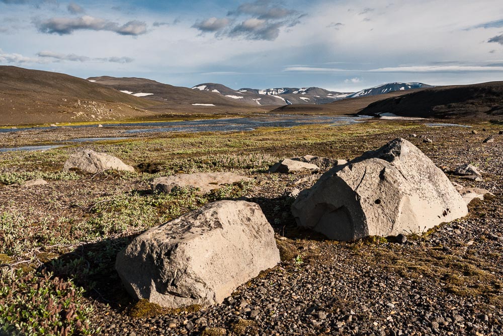 C’est la piste reine de l’Islande, celle qui offre la plus spectaculaire traversée nord-sud de l’île. En partant du sud, elle commence par traverser un gigantesque désert fait de rocs, de sable, de gravier, de lacs, de montagnes, balayé par un vent glacé. En plein centre se trouve le refuge de Nyidalur, oasis de verdure au pied de la calotte glaciaire du Hofsjökull. En continuant vers le nord, elle permet d’atteindre les belles chutes d’eau de Hrafnabjargarfoss et Aldeyarfoss, avant de rejoindre les régions du nord de l’Islande.