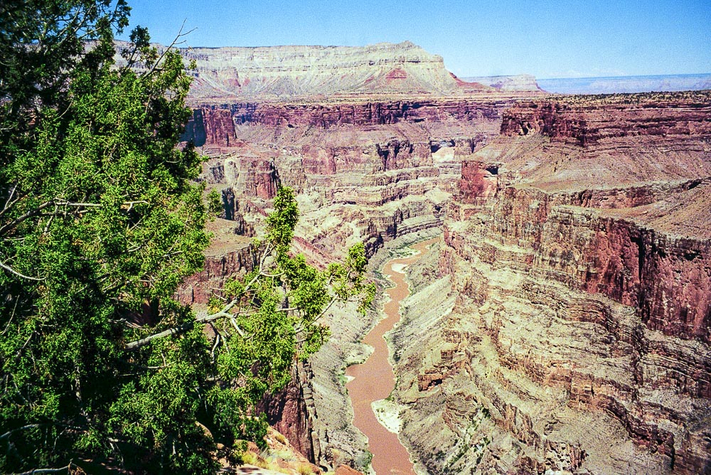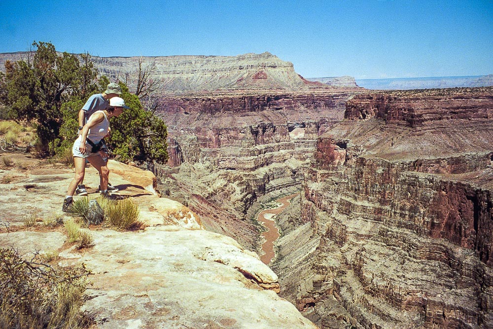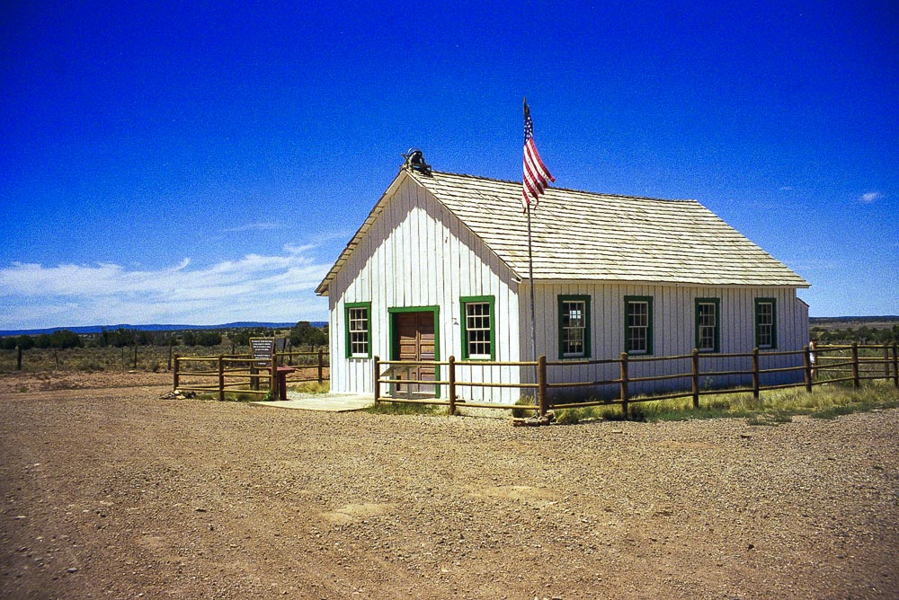 Le départ de la piste n'est pas facile à trouver depuis Saint George : aucune indication et lorsque nous avons posé la question à un ranger au bureau du tourisme, il nous a dit qu'il en avait entendu parler, qu'il ne l'avait jamais prise, ne savait pas trop d'où elle partait et qu'elle avait été fermée la semaine précédente pour cause d'incendie. Bref, nous avions l'impression que Toroweap devait rester un endroit secret et que tout était fait pour le préserver. C'était en l'an 2000, les choses ont peut-être changé depuis. Nous avpns fini par trouver le départ de la piste et n'avons rien regretté. Ce chemin traverse une région oubliée de l’ouest américain, l’Arizona Strip. Le village de Mount Trumbull, que l'on atteint au bout d'une centaine de kilomètres, est un village abandonné où seule l'école a été restaurée. Encore plus loin, on arrive à Tuweep et là, il ne reste que l'église, en fait une cabane. Enfin, la piste s’arrête net au bord du Grand Canyon. Il est là dans sa partie la plus étroite. Toroweap, c’est le nom de l’endroit, fait partie du parc national du Grand Canyon. Un terrrain de camping permet d’y faire étape et ce serait dommage de ne pas en profiter pour ceux qui sont équipés, car l’endroit mérite certainement qu’on s’y arrête une journée.